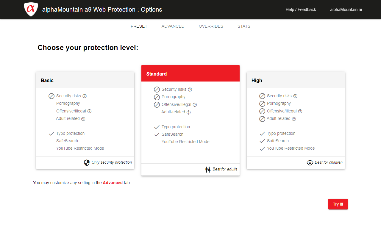 Blocks pornography and other adult content